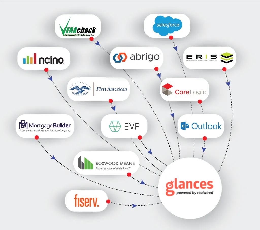 By connecting your Core, LOS, CRM, and more, Glances provides your teams with unified real-time access to authoritative data without syncing, system disruptions, or data-migration requirements