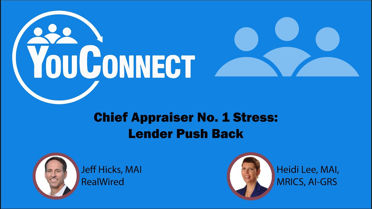 Heidi Lee, MAI, YouConnect’s Chief Compliance Consultant and Jeff Hicks, MAI, RealWired’s President discuss Chief Appraiser’s No. 1 Stress, Lender Push Back.